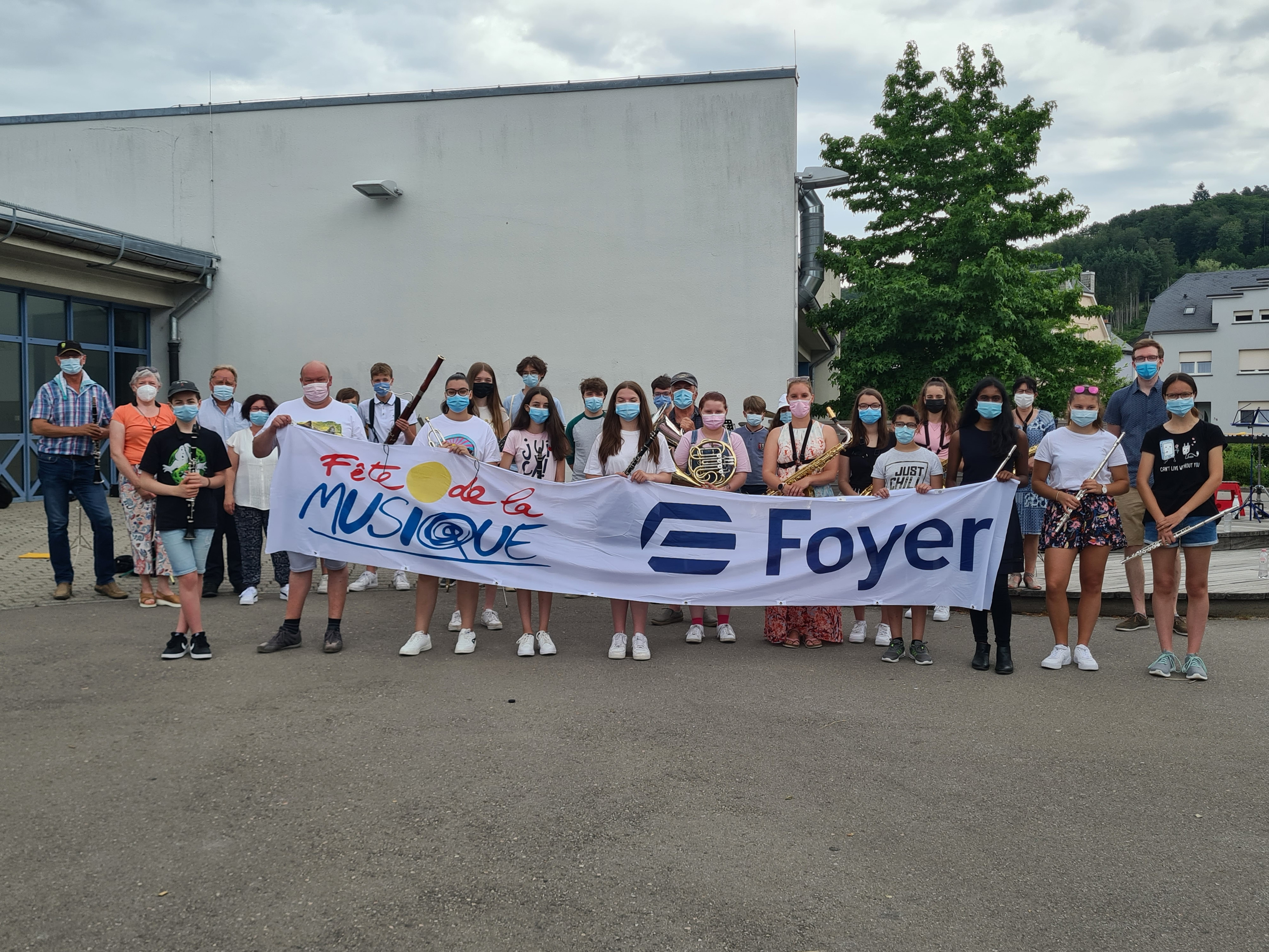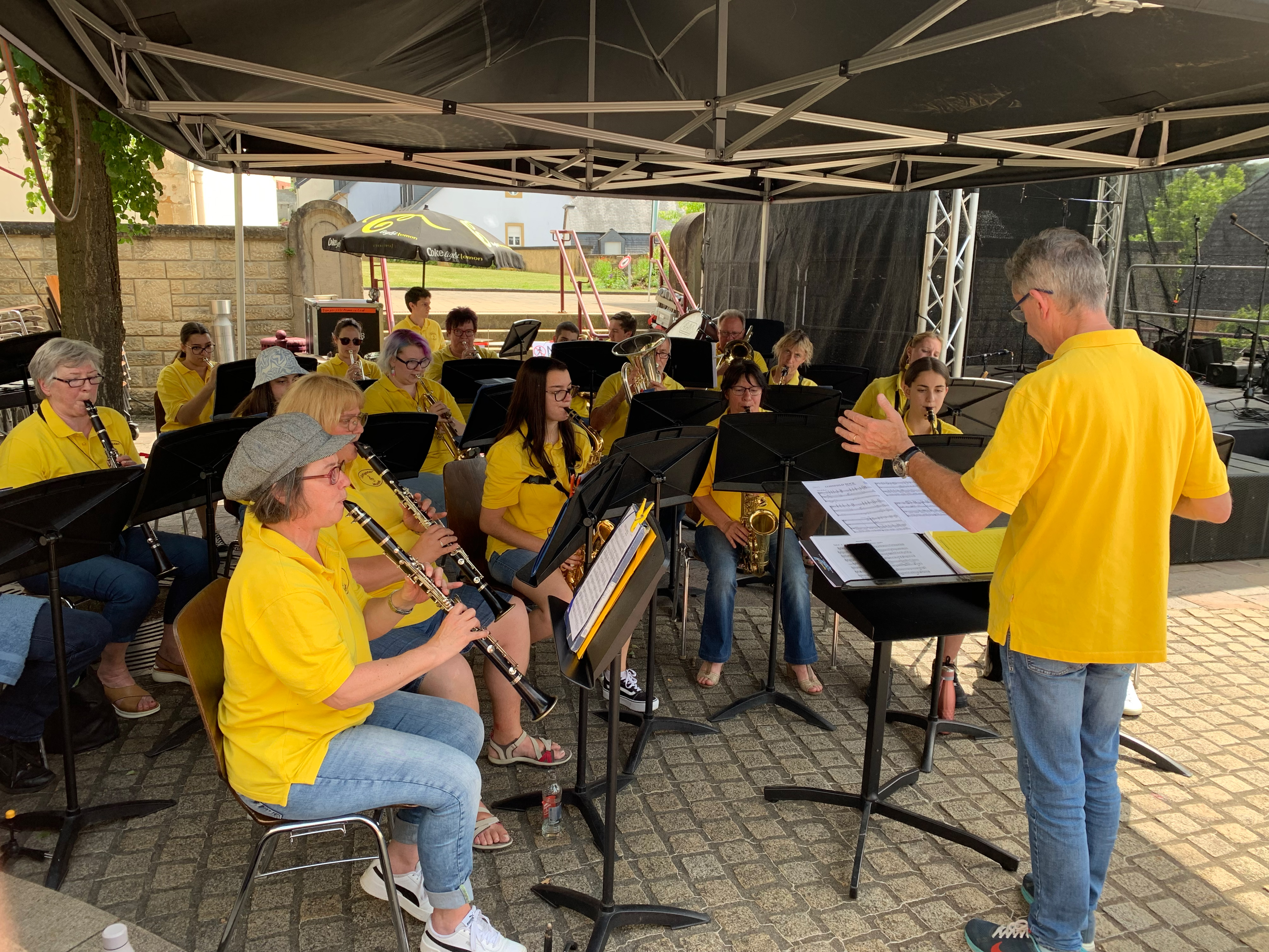 Leider huet d'Pandemie och dëst Joer net zougelooss, datt mir konnten am normale Rhythmus prouwen a Concerten spillen. Et huet gedauert bis Enn Mee ier mir aus dem Lockdown eraus waren an mat den Prouwen konnten ufänken. E Puer Rendez-vousen konnten awer bäibehalen ginn. Wéi schonn 2020 mat dem Flashmob, goufen och dëst Joer fir d’Fête de la Musique, vun der UGDA Concerten uechtert d’Land organiséiert. Zesummen mam Jugendensembel hunn mir d’Lidd “Smile… It’s Contagious” gespillt, wat extra fir dës Concerten komponéiert gouf. Mat dësem an anere flotte Lidder konnte mir dem Publikum am Lëntgener Schoulhaff e flotte Concert spillen. Fir den Hämmelsmarsch sinn mir a klengen Gruppen duerch Duerf gezunn a konnten de Léit an dëse schwieregen Zäiten e bëssen Musek bei d’Haus bréngen. Lues a lues goufen am Land erëm méi Concerten gespillt a sou hunn mir et eis net huelen gelooss den 22. Oktober 2021 eisen MERCI-Concert, als klengen Ersatz vum Gala-Concert, am Festsall ze spillen. Natierlech ënnert dem CovidCheck-Regime deen et duerch Tester an Kontrollen iwwerhaapt erméiglecht huet Evenementer mat méi engem groussen Publikum ze organiséieren. Et war e gelongene Concert mat deem mir eisen Supporter wollte Merci soen fir hir Ënnerstëtzung an der Pandemie an et huet Spaass gemaach no esou laanger Zäit erëm e richtege Concert dierfen ze spillen. Och wann d’Situatioun sech am Dezember erëm verschlechtert huet, esou hoffe mir awer datt dat nächst Joer besser gëtt an mir méi oft kennen zesummen Musek maachen.
