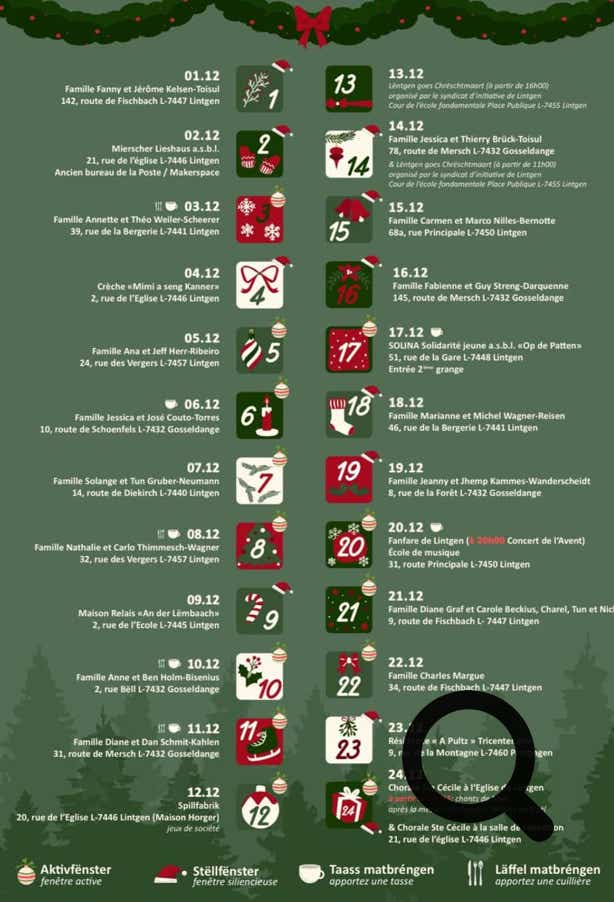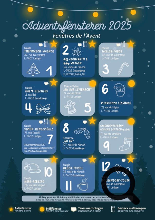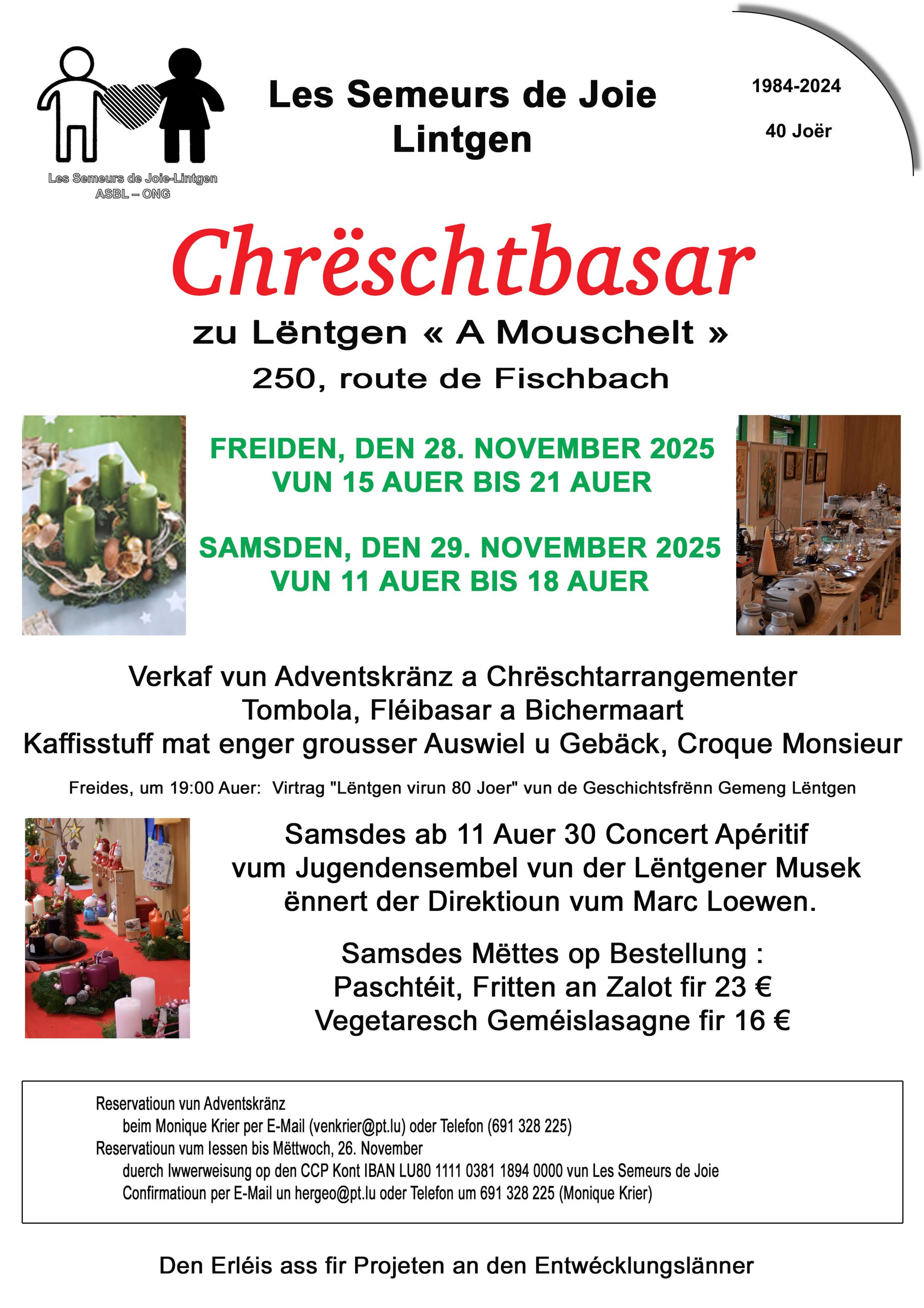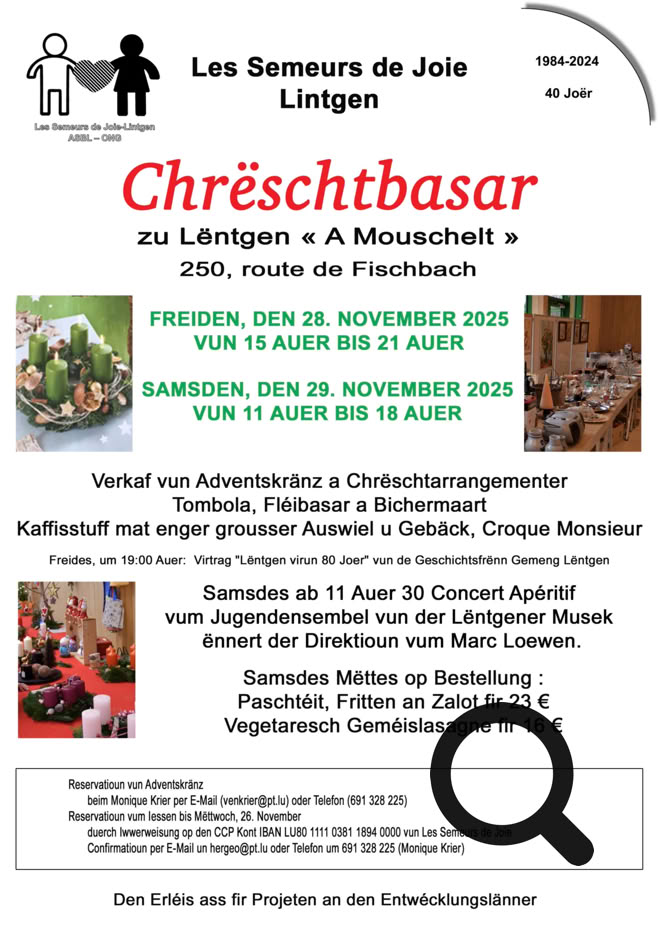weider Infoen: https://lintgen.lu/wp-content/uploads/2023/09/2025112829-flyer-bazar-de-Noel-Semeurs-de-Joie.pdf