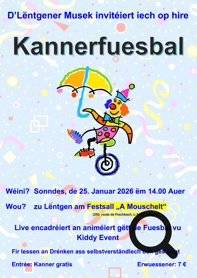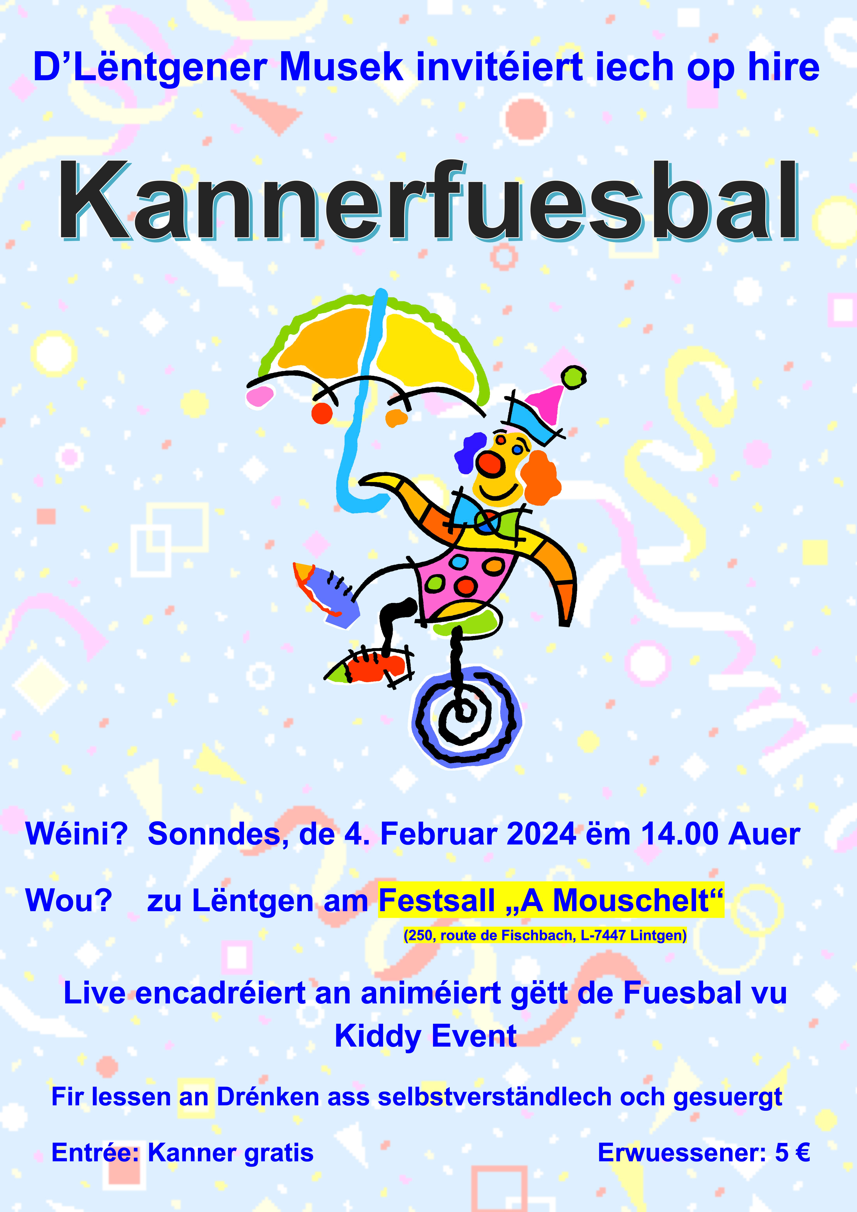Live encadréiert an animéiert gëtt de Fuesbal vu Kiddy Event.
