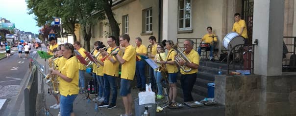 ING-Marathon zu Lëtzebuerg, d'Fanfare vu Lëntgen ass mëttlerweil fir déi drëtte Kéier dobäi fir d'Leefer unzefeieren.