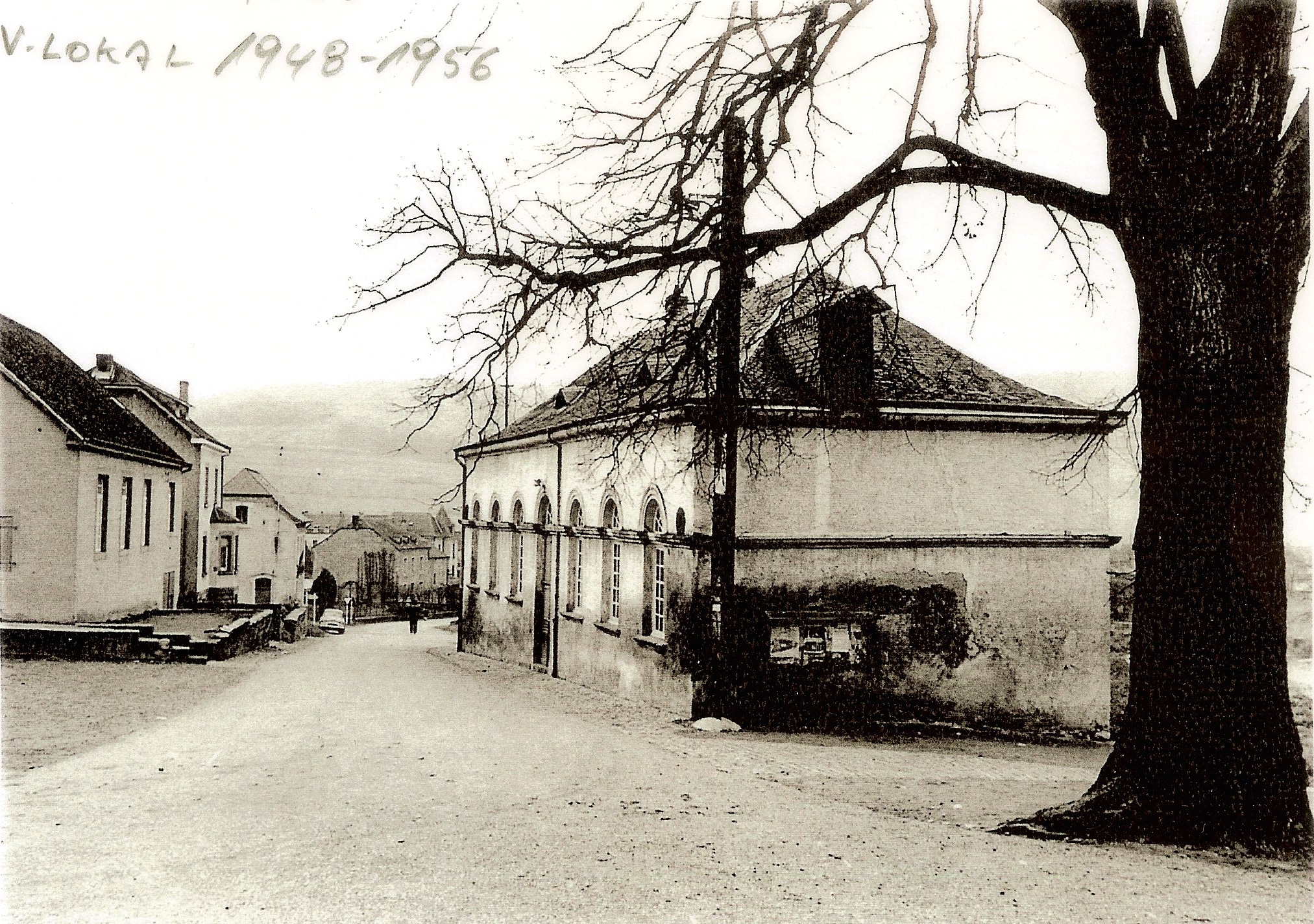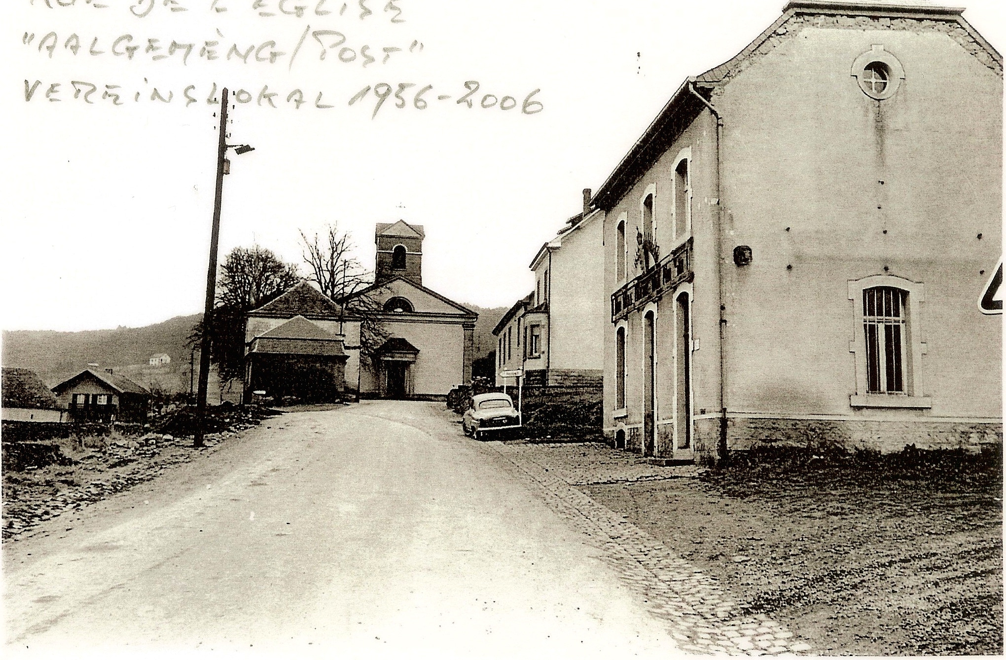 No lange Joeren an de Säll vu verschiddene Cafeeën an 1948 an der Jongeschoul, kritt d'Fanfare Lëntgen 1956 en eegene Proufsall, um éischte Stack an der aler Gemeng am Kirchewee, ënnenan ass d'Post. Am Joer 1956 gëtt och d'Strëpp vun der Musek gegrënnt, "The Village Band".